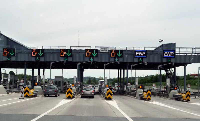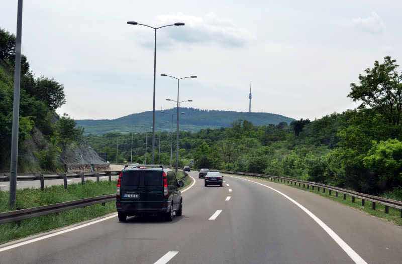 Um 11:40, rund 20 km vor Belgrad, müssen wir erstmals Maut zahlen (inzwischen befinden wir uns wieder auf der anderen Seite der Donau). Ich reiche dem Mautkassierer das Ticket. Die Bezahlung (840 RSD) erfolgt kontaktlos mit der Mastercard, man muss sie nur zum Terminal hinhalten. Von hier führt die Autobahn mautfrei durch die serbische Hauptstadt.