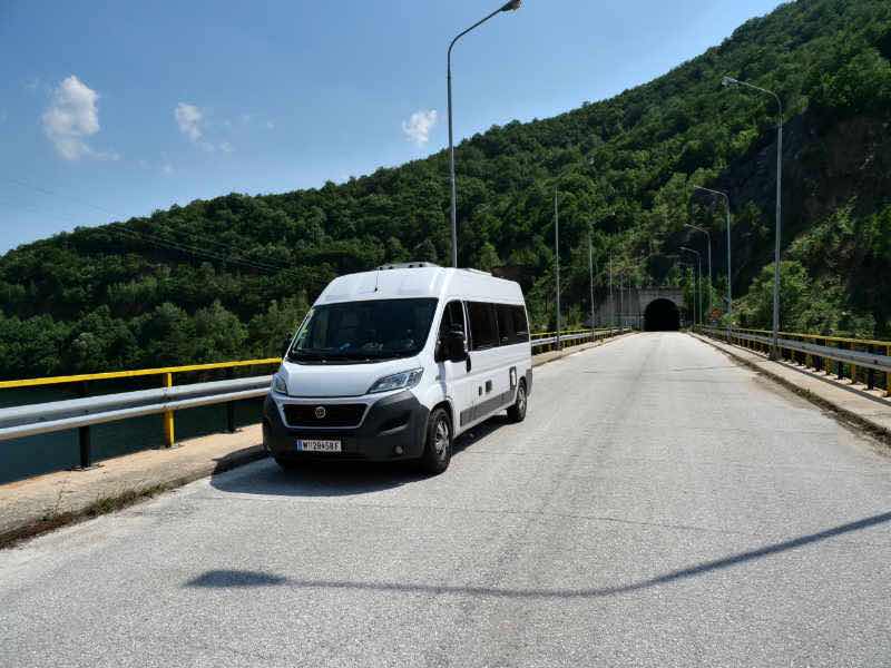 „Nach dem Essen sollst du ruhn - oder viele Kilometer tun.“ Wir machen Letzteres und verlassen Drama in nordöstlicher Richtung. Als wir den Fluss Nestos erreichen, biegen wir nach Norden ab. Unser Ziel ist eine Staumauer, die man aber leider nur aus der Ferne fotografieren kann.