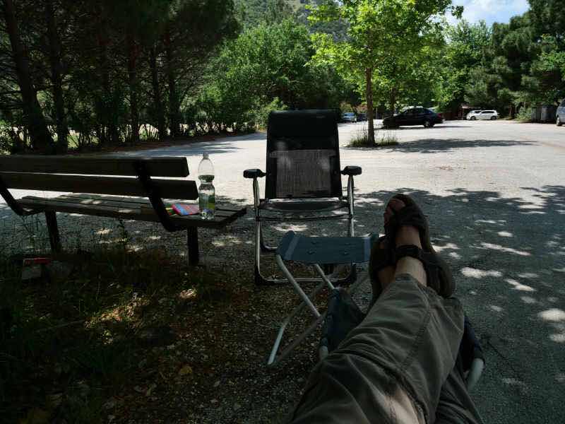 Kurz nach 12 Uhr sind wir zurück bei Ludwig van Tourer. Nachdem wir geduscht haben, setzen wir uns in den Schatten, um uns zu erholen.
