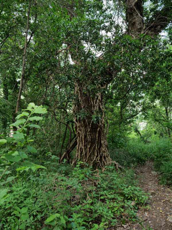 Einmal versperrt ein umgestürzter Baum den Weg. Es stellt aber kein Problem dar, darüber zu klettern.