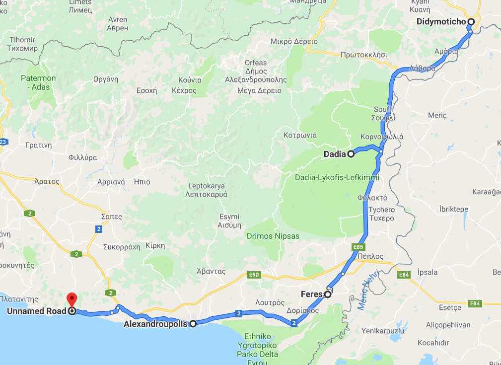 Nach einem Tankstopp erreichen wir kurz nach 14 Uhr Alexandroupoli. Wir parken auf einem kostenpflichtigen Parkplatz (1,50 Euro pro Stunde) in der Nähe des Leuchtturms. Außer diesem Wahrzeichen hat die Stadt wenig zu bieten. Nach einem Spaziergang auf der Uferpromenade sind wir nach 50 Minuten zurück beim Reisemobil.