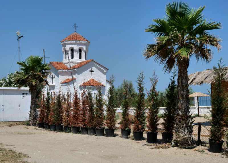 Kurz vor Elassona biegen wir bei Kallithea ab, um zum Meer zu fahren. Gleich hinter der Kreuzung wurde eine hübsche Kirche gebaut.