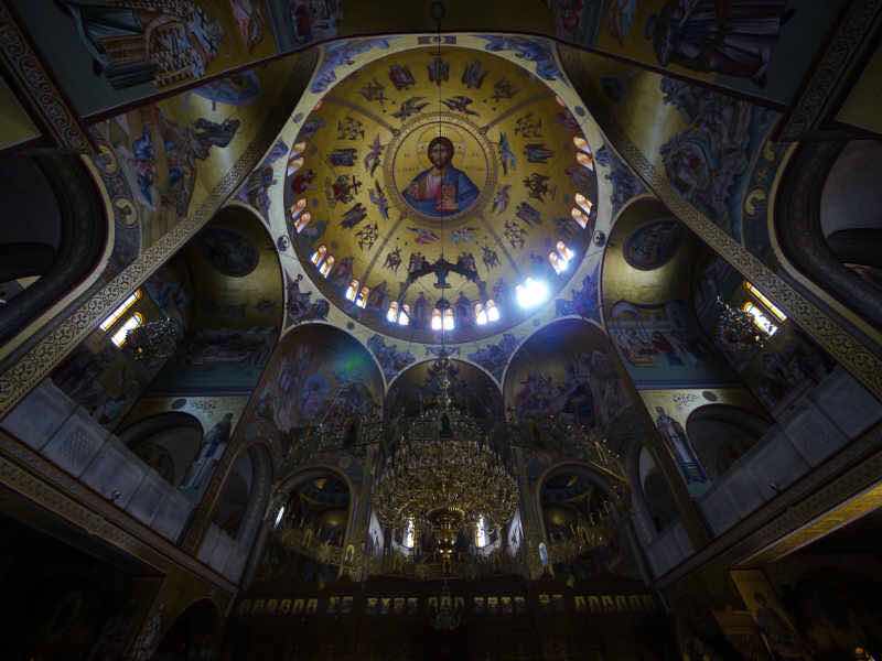 Same procedure as yesterday: Frühstücken, Schwimmen, Duschen. Danach checken wir unsere Wanderausrüstung (z.B. Zelt aufbauen). Kurz vor halb elf verlassen wir den Übernachtungsplatz bei der Kapelle. Wir versuchen, möglichst nahe am Meer zu fahren, und gelangen nach Nea Michaniona, wo wir eine große Kirche entdecken, ...