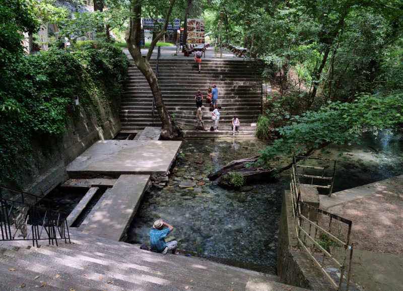 Wie praktisch: eine Quelle liefert geweihtes Wasser. Wir halten die Füße in die kalte Flüssigkeit - selbst wenn‘s nicht hilft, wird es wohl nicht schaden.