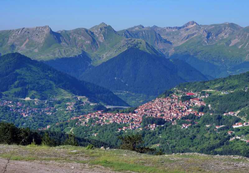 Wir wollen heute versuchen, den Katara-Pass von der anderen Seite zu erreichen. Am Beginn haben wir einen herrlichen Ausblick auf Metsovo und einige Berge des Pindos-Gebirges.