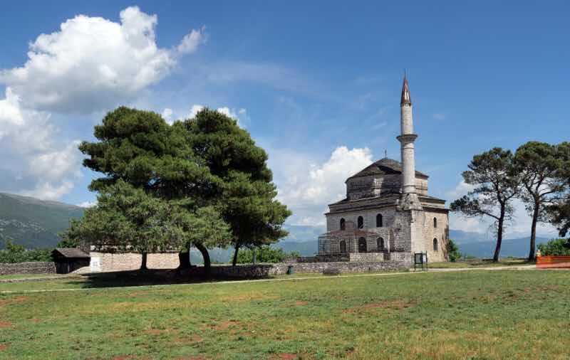 Wir lassen uns von Tomtom zu einem Parkplatz in der Nähe der Festung, die auf einer Halbinsel liegt und die Altstadt umschließt, navigieren. Zuerst gehen wir am Seeufer entlang, bis wir die Anlegestelle der Boote zur Klosterinsel erreichen. Da wir in den letzten Tagen mehr als genug Klöster gesehen haben, verzichten wir auf eine Bootsfahrt und suchen stattdessen einen Eingang ins Innere der Festungsmauer. Dort gibt es als Sehenswürdigkeiten gleich zwei Moscheen: die Aslan Pascha Moschee ...
