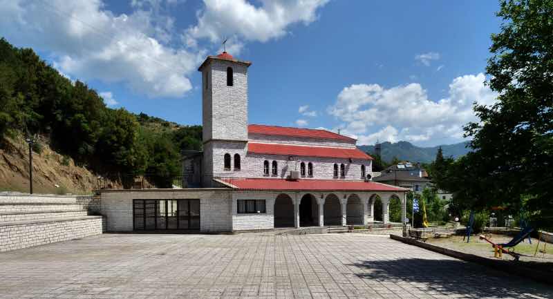 In Votonosi stoppen wir bei einer kleinen Steinkirche. Ein paar Kilometer weiter in Mikro Peristeri: eine Kirche in ungewöhnlichem Design: