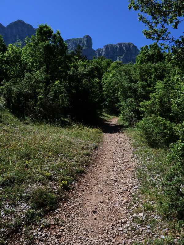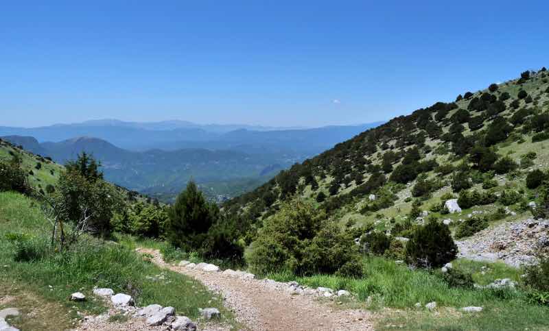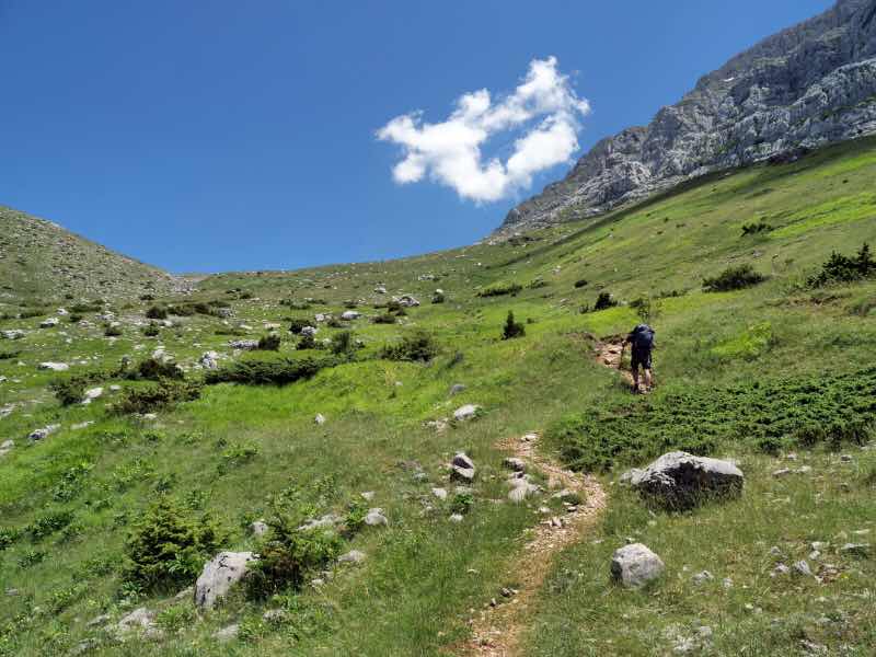 Der Weg geht stetig bergauf, ist aber nicht so steil wie auf den Olymp. Und es sind weitaus weniger Wanderer unterwegs.