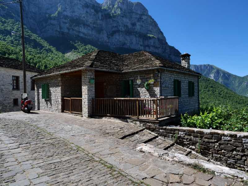 Danach essen wir einen ausgiebigen Brunch und fahren nach Mikro Papingo, wo wir für Ludwig ein schattiges Plätzchen neben der Straße finden. Hier ist der Startpunkt der Wanderung. Um dreiviertel elf brechen wir auf.