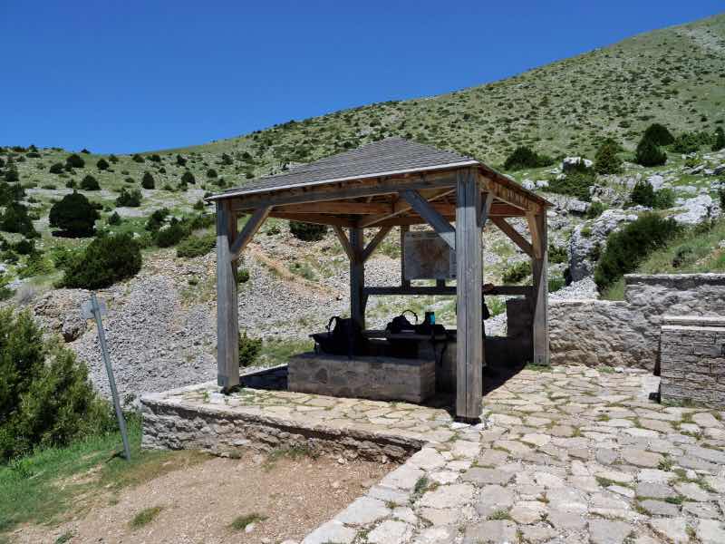 Wir kommen an vier Brunnen (von denen einer kein Wasser gibt) sowie einem Rastplatz ohne Wasser vorbei, bei denen wir jeweils Pausen einlegen.