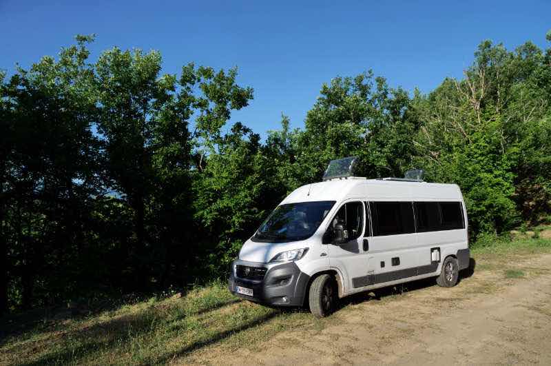 Die letzte Fahrt des Tages bringt uns auf einen Hügel, von dem aus man Kastoria sieht. Da es hier sehr ruhig ist, beschließen wir, über Nacht zu bleiben. Wenig später setzt für zwei Stunden Regen ein.