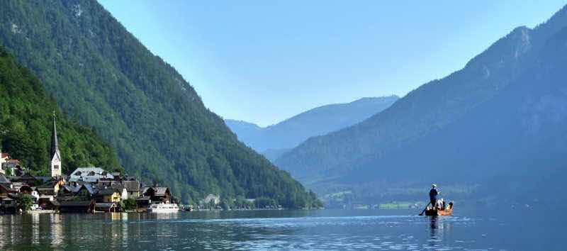 Mit rund 4 km/h schippern wir nach Hallstatt.