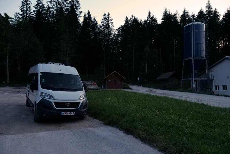 Um 20:30, 10 Minuten nach Sonnenuntergang, erreiche ich den Pötschenpass an der Grenze zwischen Steiermark und Oberösterreich, wo wir auch vor ein paar Wochen übernachtet haben.