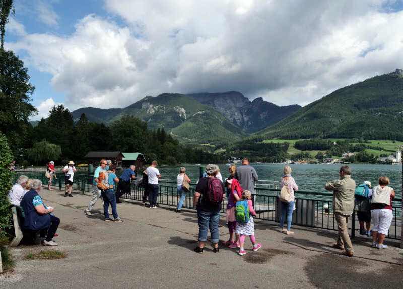 Das Ticket bekommt man auf dem Schiff. Ich stehe ganz hinten in der Schlange. Als ich bezahle, sind wir schon fast in St. Wolfgang. Von der Anlegestelle folge ich den anderen Passagieren in Richtung Stadtzentrum.