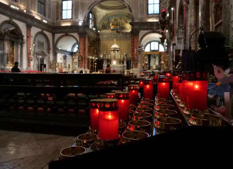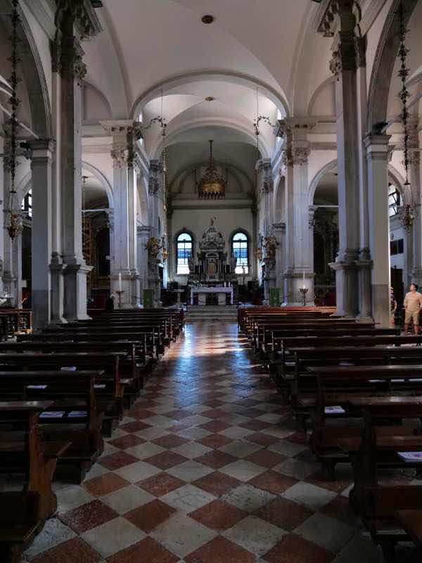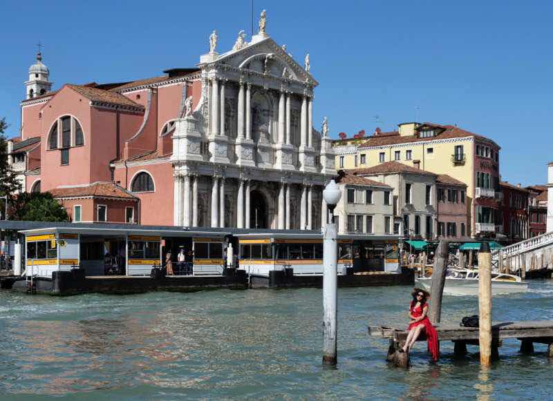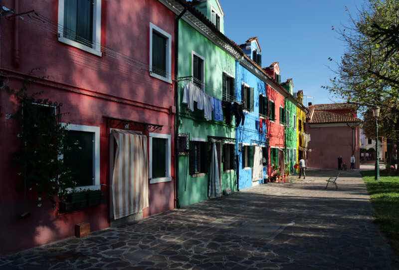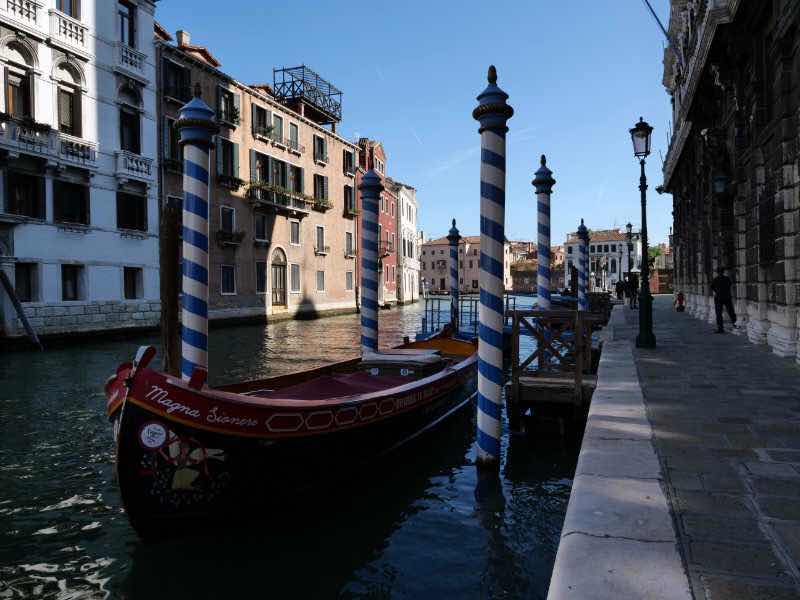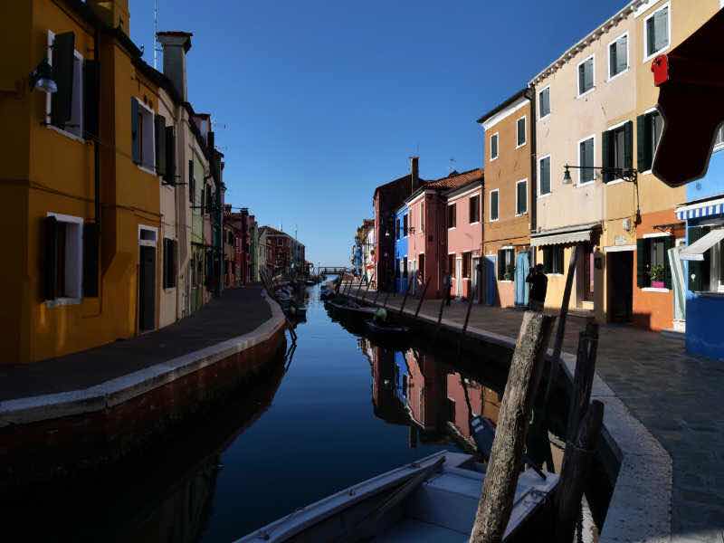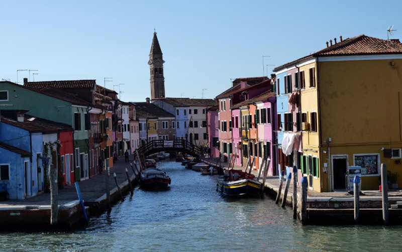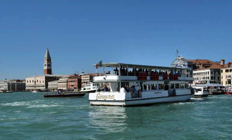 Heute scheint bereits am Morgen die Sonne. Ich stehe eine halbe Stunde später auf als gestern und nehme den Bus um 8:43 (vier Minuten verspätet, weniger als halb voll). Da in Punta Sabbioni gerade ein Boot nach Burano einläuft, beginne ich das heutige Sightseeing auf der Insel der bunten Häuser. Ich spaziere zwei Stunden durch die Gassen und an den Kanälen entlang. In der Kirche (deren schiefer Turm jenem von Pisa Konkurrenz macht) ist Fotografieren nicht verboten. Um 11:26 fahre ich mit der Linie 14 in Richtung San Marco. Das große Boot ist mit einem WC ausgestattet (allerdings die Hockerl-Variante). Am Lido di Venezia steige ich aus, einerseits um ein paar Fotos zu schießen, andererseits weil hier die End-/Anfangsstation der Linie 1 ist, die durch den Canal Grande fährt. Ich habe Glück: es kommt ein Boot mit ein paar Sitzplätzen im Freien am Bug, und ich ergattere dort einen Platz auf der Steuerbordseite. Das Vaporetto bringt mich zur Piazzale Roma. Ich überquere den Canal Grande, gehe am Bahnhof vorbei, besichtige die schöne Kirche Chiesa di Santa Maria di Nazareth (Fotografieren ohne Blitz erlaubt) und spaziere dann langsam in der Nähe des Canal Grande (direkt am Kanal gibt es keinen Gehweg, man kommt nur über diverse Stichstraßen hin) bis zur Rialtobrücke (was Millionen anderer Touristen in dieser oder in der Gegenrichtung ebenfalls machen). Da es bereits halb 6 ist und mir die Füße weh tun, entere ich ein Vaporetto der Linie 2 zum Markusplatz. Einige hundert Meter weiter befindet sich die Haltestelle der Linie 14. Wie gestern fährt eine Minute vorher ein Schiff der Linie 15 ab, das Punta Sabbioni ohne Zwischenstopp am Lido ansteuert. Heute folge ich der Mehrzahl der Passagiere auf dieses Boot und bekomme sogar noch einen Sitzplatz. Der Bus wartet bereits und setzt sich um 18:50 in Bewegung (ohne im Fahrplan verzeichnet zu sein). Um 19:10 treffe ich bei Ludwig ein, wo ich Cevapcici mit Tomatensalat koche.