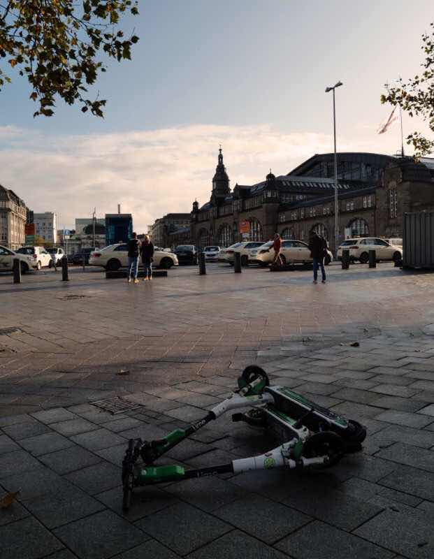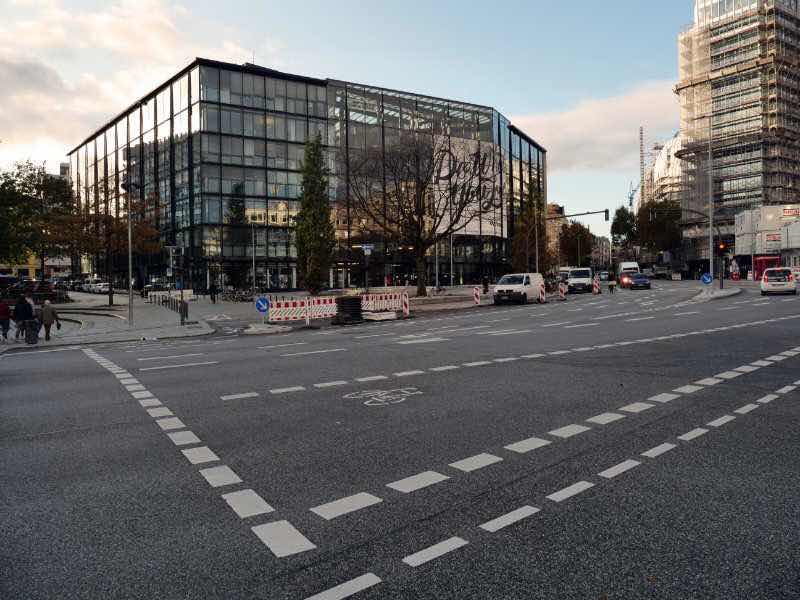 Eine Stunde später fahre ich mit S- und U-Bahn zum Gänsemarkt. Es ziehen jetzt mehrere Regenwolken über die Stadt und lassen ihre Ladung fallen. Dazwischen scheint immer wieder die Sonne. Einmal sehe ich einen Regenbogen. In der Gerhofstraße, einer Fußgängerzone, befindet sich ein zweistöckiges Globetrotter-Geschäft. Ich besichtige die Einkaufs-Passage Hanseviertel. In der ABC-Straße hat Google einen Firmensitz. Ich gehe dann hinunter zur U-Bahn-Station Rödingsmarkt und fahre mit der U3 zur Station Barmbek. Hier befindet sich die zweite Hamburger Globetrotter-Filiale (mit 5 Stockwerken deutlich größer als in der Innenstadt), die wir 2017 bereits einmal besucht haben. Das Museum der Arbeit steht nebenan. Die Sonne geht unter, und ich kehre zum Wohnmobilhafen zurück, wo ich meine restlichen Faschierten Laibchen, Tomaten und Brot verspeise.